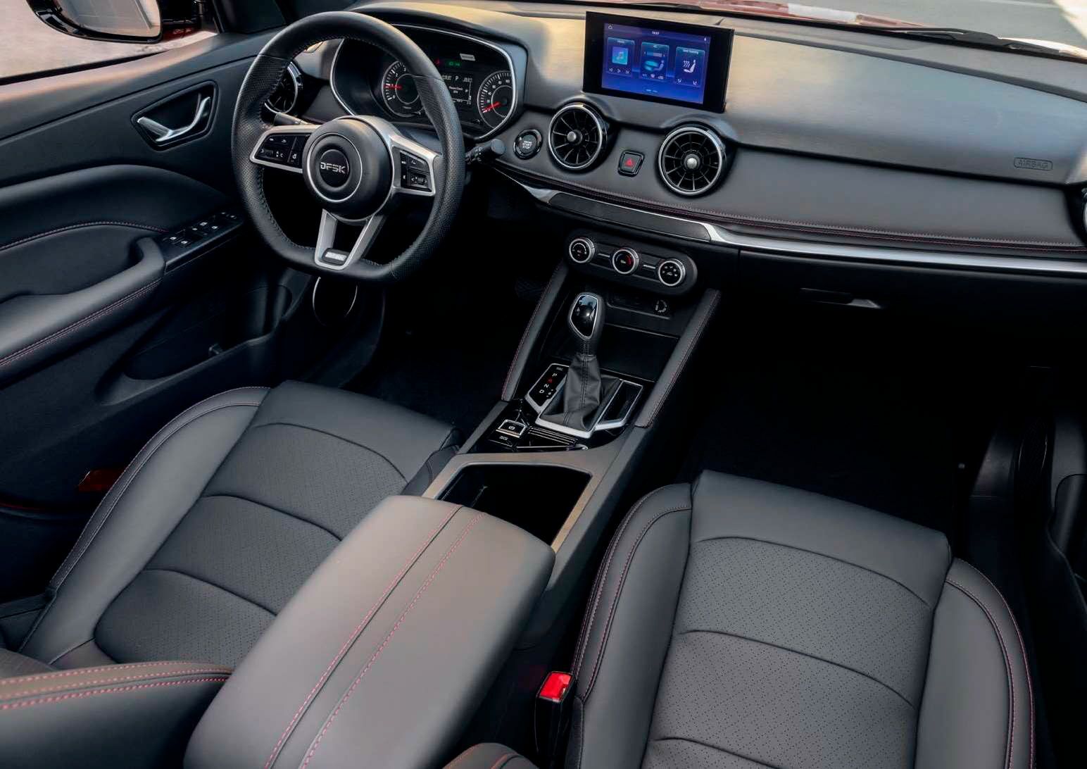 Отделка сидений эко-кожей, черная с красной прострочкой